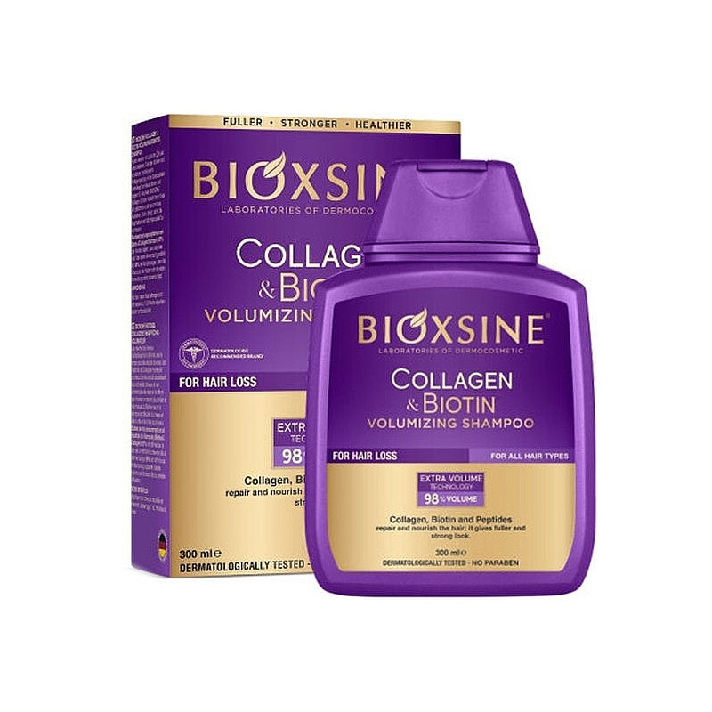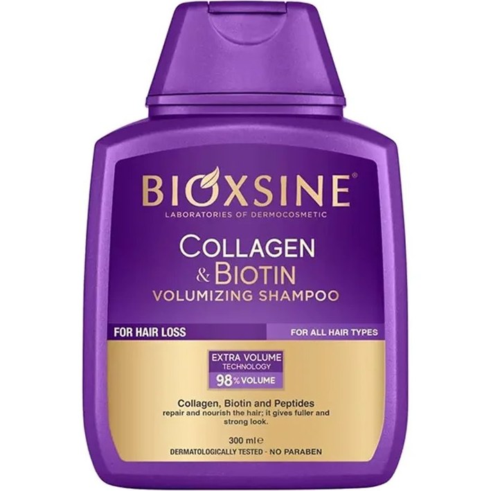 ویژگی شامپو ضد ریزش و حجم دهنده بیوتین و کلاژن بیوکسین مناسب انواع مو ۳۰۰میل