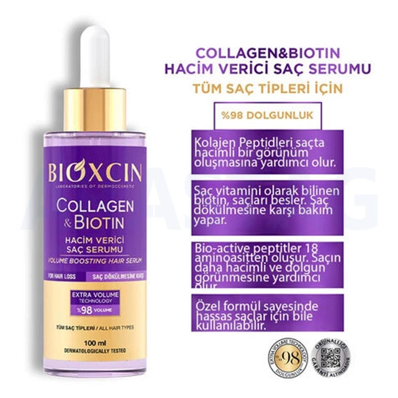 سرم موی بیوتین و کلاژن بیوکسین (Bioxcin Collagen & Biotin Extra Volume and Anti-Loss Hair Serum) یک محصول تخصصی از برند ترکیهای بیوکسین است که برای تقویت، حجمدهی و جلوگیری از ریزش مو طراحی شده. این سرم با فرمولاسیون غنی و سبک، مناسب انواع مو بهویژه موهای نازک، ضعیف و مستعد ریزش است.