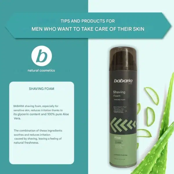 محصول «Babaria Men Espuma de Afeitar» یک فوم اصلاح مردانه با فرمولاسیونی ویژه برای پوستهای حساس است که تجربهای لطیف، محافظتشده و آرامشبخش را هنگام اصلاح فراهم میکند. این محصول با ترکیبی از آلوئهورا و آلانتوئین طراحی شده تا علاوه بر اصلاحی دقیق، به مراقبت از پوست نیز بپردازد.