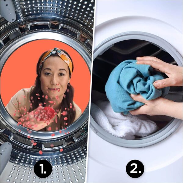 1. قبل از شستشو، مقدار دلخواه از دانهها را مستقیماً داخل دیگ ماشین لباسشویی بریزید.