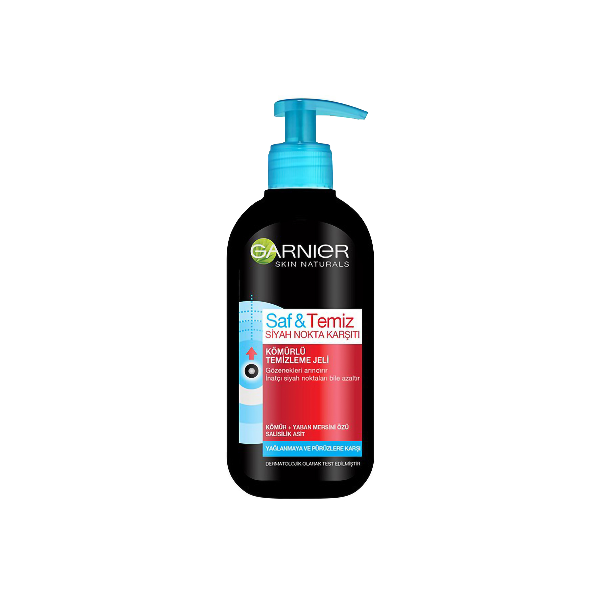 ژل شستشوی صورت گارنیر مدل Saf & Temiz حجم 200 میل با فرمولاسیون غنی شده از زغال اخته آبی، سالیسیلیک اسید و زغال، پوست را به طور عمیق تمیز می کند و با پاک کردن کثیفی ها و آلودگی های روزانه از سطح پوست، ظاهری صاف و شاداب به آن می بخشد. همچنین دارای محفظه پمپی است که استفاده بسیار آسانی دارد و از ساختاری بسیار ملایم و سازگار با پوست برخوردار است.