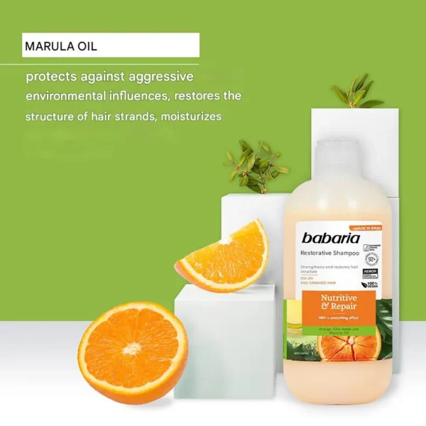 این شامپو با ترکیبی از سه ماده گیاهی قدرتمند—روغن مارولا، عصاره چیا و پرتقال—نه تنها موها را عمیقاً تغذیه میکند، بلکه به بازسازی ساختار مو کمک کرده و از وز شدن آن جلوگیری مینماید. روغن مارولا سرشار از آنتیاکسیدانها و اسیدهای چرب مفید است که به نرمی و درخشندگی مو کمک میکند. چیا با خواص تقویتکننده و مرطوبکنندهاش، تارهای مو را مقاومتر میسازد و پرتقال با ویتامین C بالا، طراوت و انرژی را به پوست سر و موها بازمیگرداند.