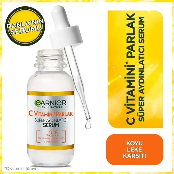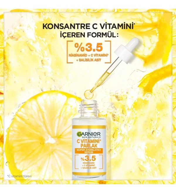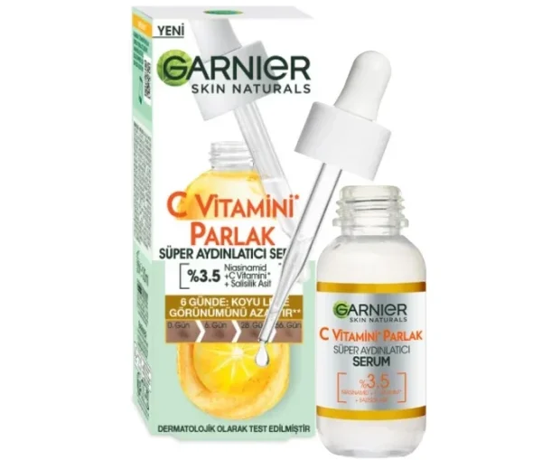 سرم Garnier Skin Naturals C Vitamin Parlak Süper Aydınlatıcı Serum یکی از جدیدترین محصولات برند گارنیر در حوزه مراقبت از پوست است که با فرمولاسیون پیشرفته و ترکیبی از سه ماده فعال قدرتمند، بهطور تخصصی برای روشنسازی پوست، کاهش لکهای تیره و بهبود بافت پوست طراحی شده است. این محصول با بستهبندی جذاب و قطرهچکان کاربردی، استفاده آسانی دارد و برای روتین روزانه و شبانه مناسب است.