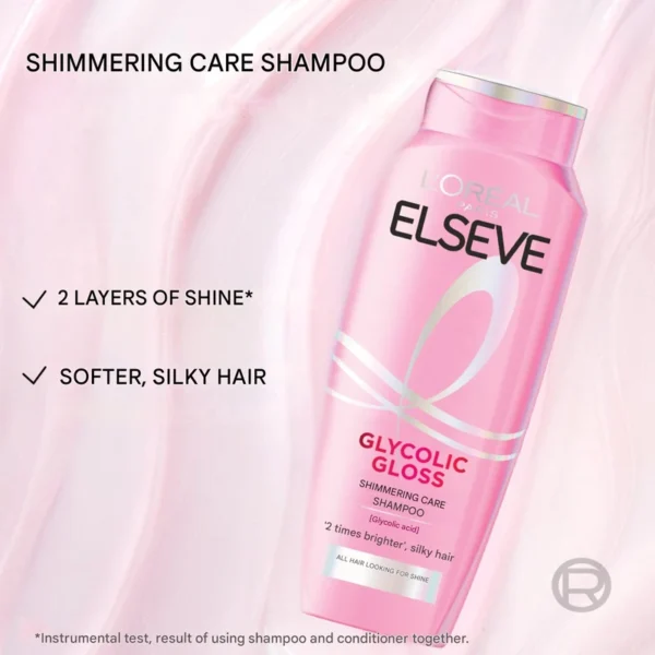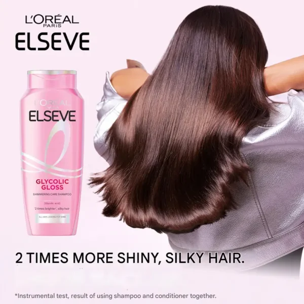 L’Oréal Paris Elseve Glycolic Gloss Shampoo یک شامپوی درخشانکننده و صافکننده مو است که با الهام از تکنیکهای براقسازی حرفهای در سالنها، فرمولی پیشرفته ارائه میدهد. این شامپو با بهرهگیری از گلیکولیک اسید – یکی از کوچکترین و مؤثرترین AHAها – لایه کوتیکول مو را کاملاً هموار میکند تا مو بتواند نور را بهتر منعکس کند و جلوهای سالم، براق و شیشهمانند پیدا کند.