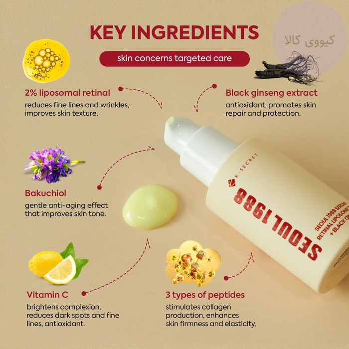 | نام محصول | سرم جوانساز رتینال لیپوزومی و جنسینگ سیاه سئول 1988 |
