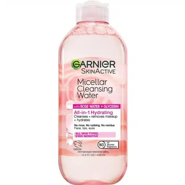 میسلار واتر رز گارنیر یک پاککننده ایدهآل برای پوستهای حساس است که بهراحتی انواع آرایش، حتی آرایشهای ضدآب، را پاک میکند.این محصول با بهرهگیری از جدیدترین فرمولاسیون، بدون ایجاد خشکی روی پوست، تمام آلودگیها و ناخالصیها را از بین میبرد. استفاده از این محلول نیازی به شستشو ندارد و در نهایت، پوست را شفاف، لطیف و پاکیزه میکند.علاوه بر خاصیت پاککنندگی، میسلار واتر رز گارنیر اثر التیامبخشی برای پوستهای حساس دارد. وجود عصاره گل رز در ترکیبات آن باعث نرمی و آرامش پوست میشود و تحملپذیری آن را افزایش میدهد.یکی دیگر از ترکیبات مؤثر این محصول هیالورونیک اسید است که آبرسانی قوی و تقویت سد دفاعی پوستهای خشک را بر عهده دارد.این ماده با کاهش خشکی، از پوست در برابر رادیکالهای آزاد محافظت کرده و سوزش و قرمزی را کاهش میدهد.همچنین، طراوت و شادابی را به پوست بازمیگرداند. اگر پوستی حساس دارید، این میسلار واتر گارنیر انتخابی عالی است.