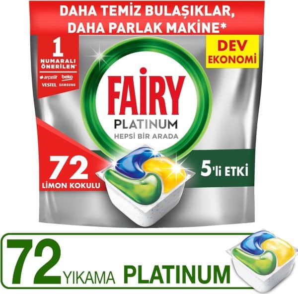 قرص ماشین ظرفشویی فیری مدل Platinum بسته 72 عددی با تکنولوژی ANTI-MAT علاوه بر اینکه باقیمانده مواد غذایی را به طور کامل تمیز می کند. ظاهر مات و کدر ظروف که در طول زمان به وجود می آید را برطرف می کند و باعث براق و درخشان شدن قابلمه، ماهیتابه، قاشق و چنگال و لیوان ها مانند روز اول می شود.قرص ماشین ظرفشویی فیری با فرمولاسیون فاقد فسفات و قدرت تمیز کنندگی بالا نیاز به خیساندن ظرف ها را از بین می برد و به صرفه جویی در مصرف آب کمک می کند. ساختار منحصر به فرد این قرص از پودر و مایع شوینده تشکیل شده است. پودر این کپسول با فرمول برخوردار از آنزیم و مواد سفید کننده، سبب ضدعفونی و بهداشتی تر شدن ظروف می گردد.مایع موجود در بالای قرص ماشین ظرفشویی فیری قدرت چربی زدایی فوق العاده ای دارد و به از بین بردن انواع چربی های سوخته و دشوار کمک شایانی می کند. روکش قرص قابلیت حل شدن سریع دارد و این به معنای پاکیزگی سریع و کامل ظروف است. همچنین سبب استفاده کامل از محتویات محصول می شود و مواد اضافی در ماشین ظرفشویی باقی نمی گذارد.این محصول در برنامه های زمان کوتاه نیز عملکردی موثر ارائه می دهد و رایحه ای تمیز در دستگاه باقی می گذارد. همچنین حاوی نمک و جلادهنده می باشد که نیاز به تهیه جداگانه این محصولات را از بین می برد و از سلامت و کارایی ماشین محافظت می کند.