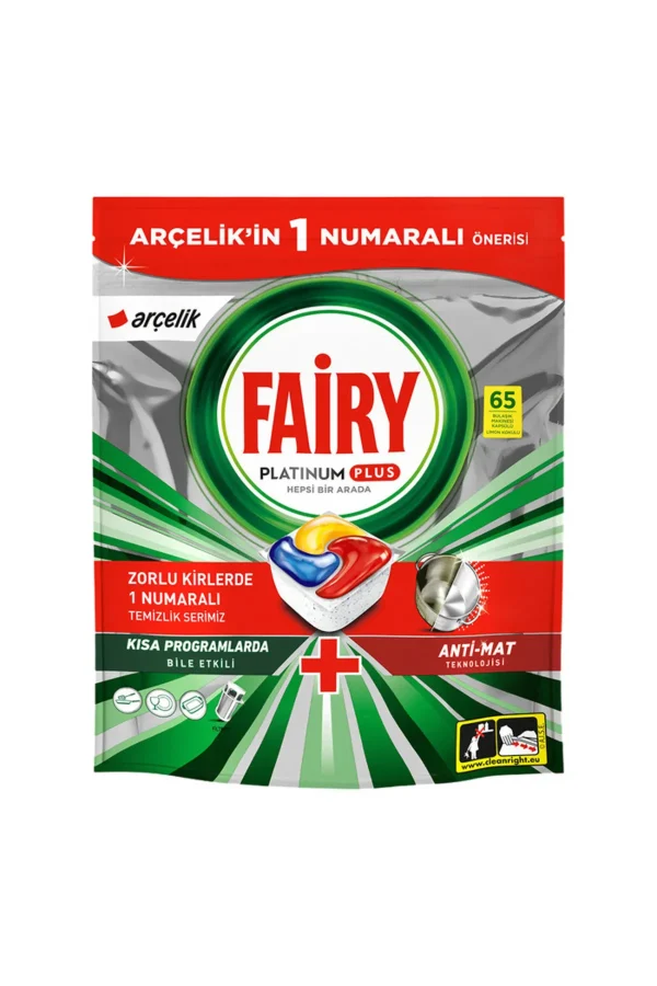 ویژگیهای قرص ماشین ظرفشویی فیری مدل Platinum Plus بسته 65 عددی