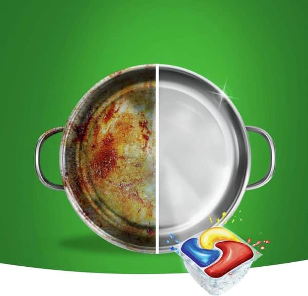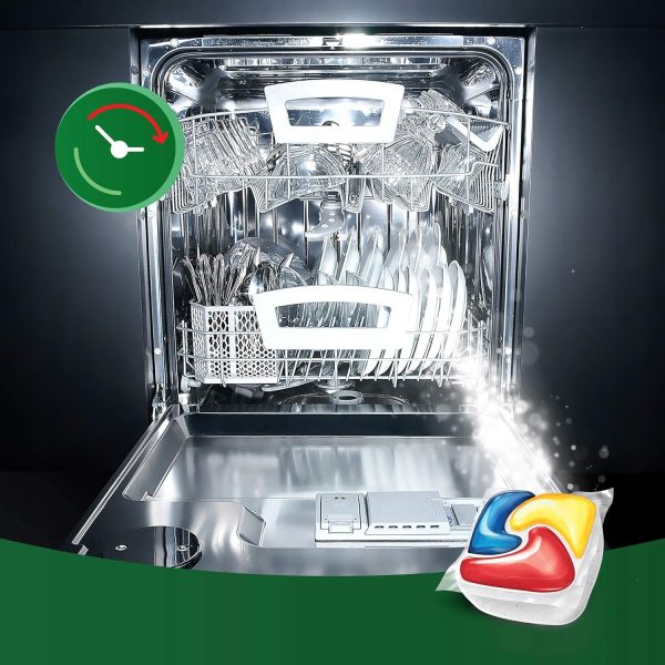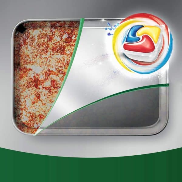 - عملکرد 3 در 1 (و بیشتر): حاوی مواد شوینده، نمک داخلی برای نرم کردن آب و جلوگیری از رسوب، و جلادهنده برای درخشندگی و جلوگیری از لکه آب است.
